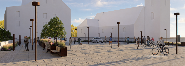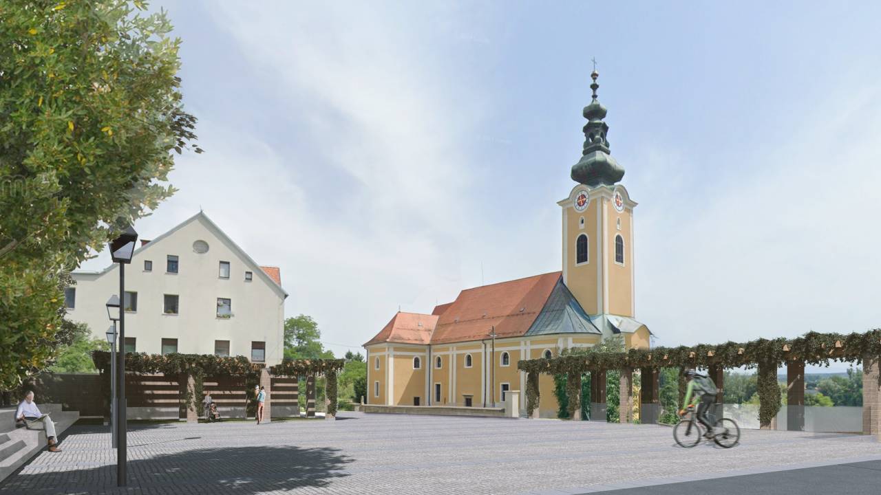 Zmagovalna rešitev oblikuje jasno prepoznaven, večnamenski trg kot povezovalni element med cerkvijo, župniščem in okoliško vinogradniško krajino. Posebno težo ima uvedba koncepta deljenega prostora z umirjenim prometom ter poudarjanje lokalnosti z uporabo avtohtonih materialov, kot je zbita zemlja, in jasno prostorsko hierarhijo.