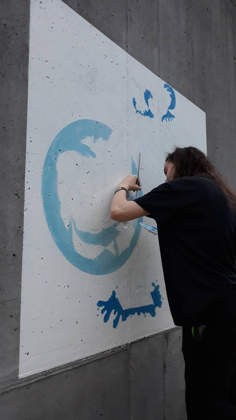 Lea je z nami še delila, da so pogoji za risanje najboljši zjutraj in pozno popoldan, ker se barva počasneje suši, njeno nadobudnost pa v družbi AquaSystems zelo cenijo.
