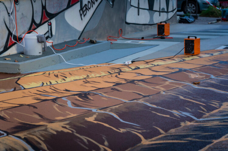 »Ko 3D umetniki delamo poslikave na tleh, večinoma s sliko ustvarjamo iluzije pod površino zemlje oziroma asfalta. Moja poslikava bo prikazovala luknjo s starimi stopnicami. Čeprav se na sliki ne bo videlo, sem v mislih imel vaše stare vinske kleti, po katerih je Maribor znan. Drugi del zgodbe, za naslednje leto, predvideva drevesa na fasadi in spalne kabine, kot povezovalni člen s Hostlom in okolico, ki vas obkroža, čudoviti park in vašo soseščino, ki se sama od sebe nudi kot inspiracija,« pravi 3D Filip.