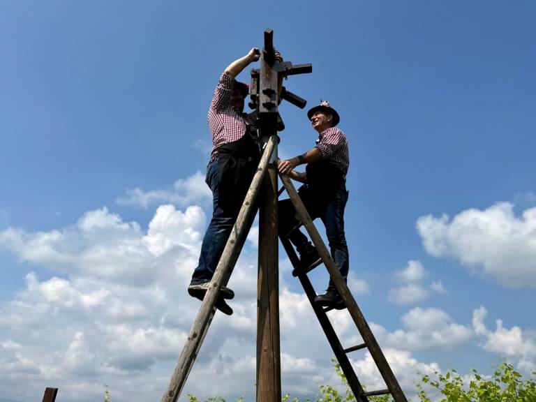 Mestni klopotec so danes postavili pod Kalvarijo, na posesti Biotehniške šole Maribor.