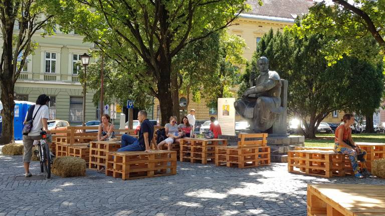 »Zdaj, ko sedim tukaj, je dejansko še boljše izpadlo, kot sem si v mislih predstavljal in želel. Prostor je res ful dinamičen, vsak si lahko najde svoj prostorček, svojo drevo, senco, se vsede na paletke, bale slame ali na klasične mize. Stojnice so lepo okoli vodnjaka razporejene, v ozadju je čudovita stavba univerze, na drugi strani stolnica in trg je res zaživel,« opisuje Krštinc.