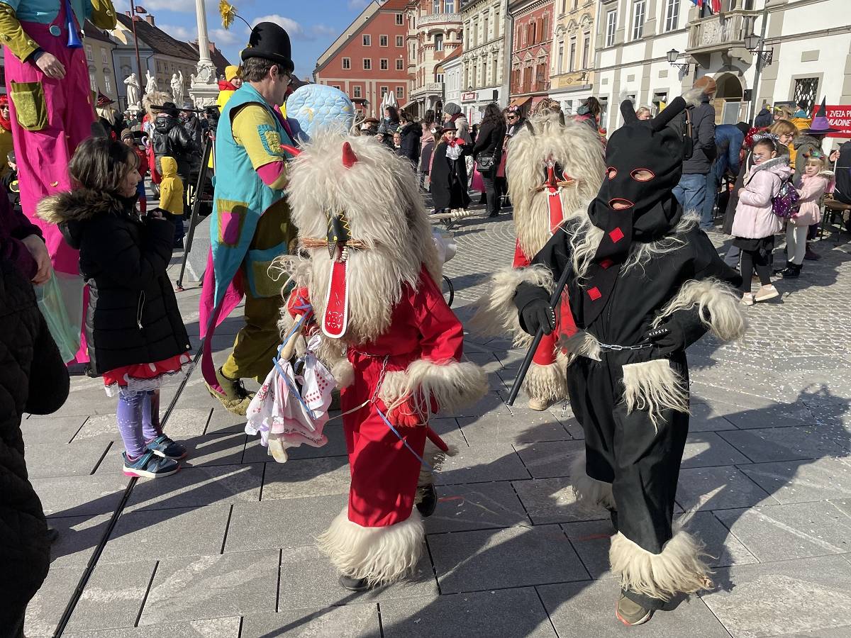 Na Glavnem trgu lahko med 10.00 in 11.30 ter med 16.00 in 17.30 našemljenci pozirajo na foto točkah in se pokažejo zelo strogi pustni žiriji.