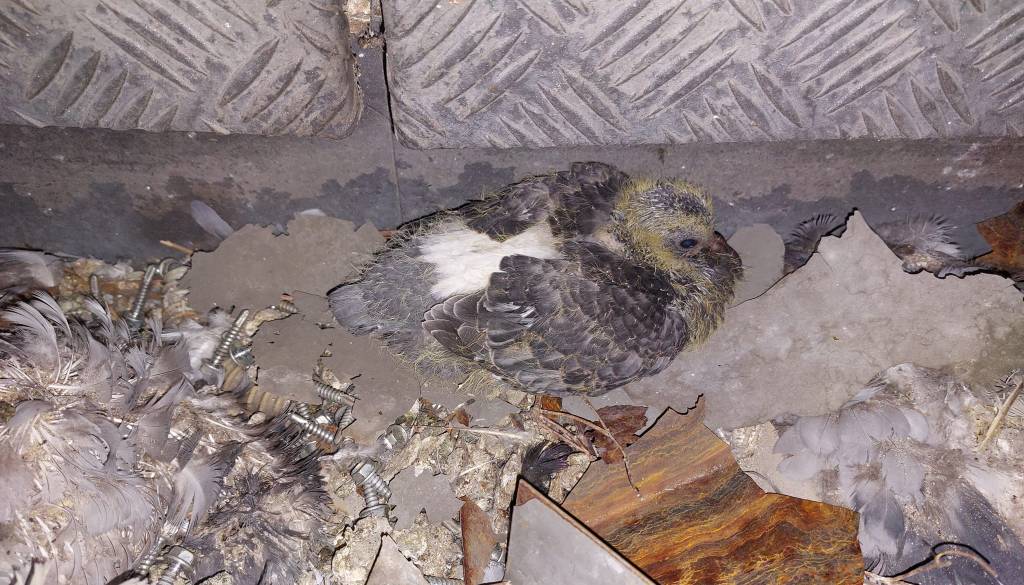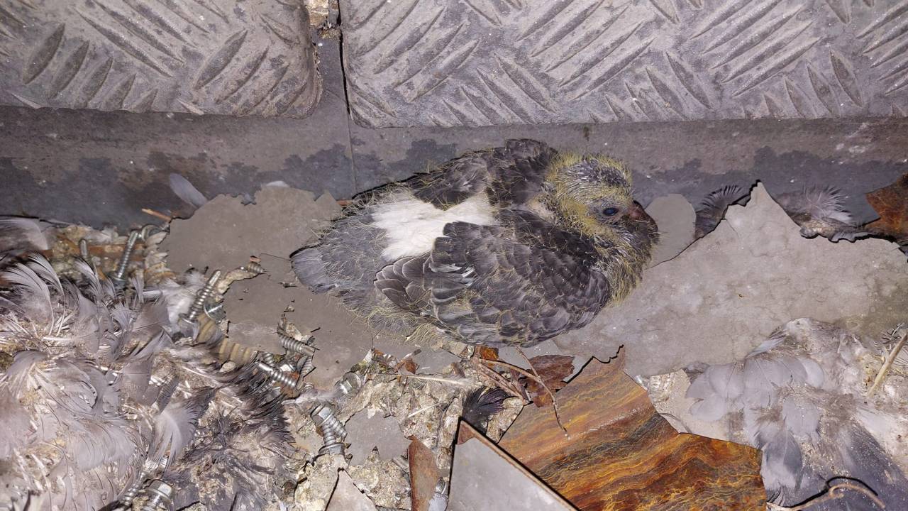»Parkirna hiša Šentpeter na Zaloški. Zaradi del so golobi pristali na tleh, pometeni na kup. Med njimi sem našla živega mladička, kje so ostali, ne upam pomisliti. Razumem, da so iztrebki moteči. Nikdar pa ne bom razumela, da se z živimi bitji ravna slabše kot s smetmi,« je zapisala.