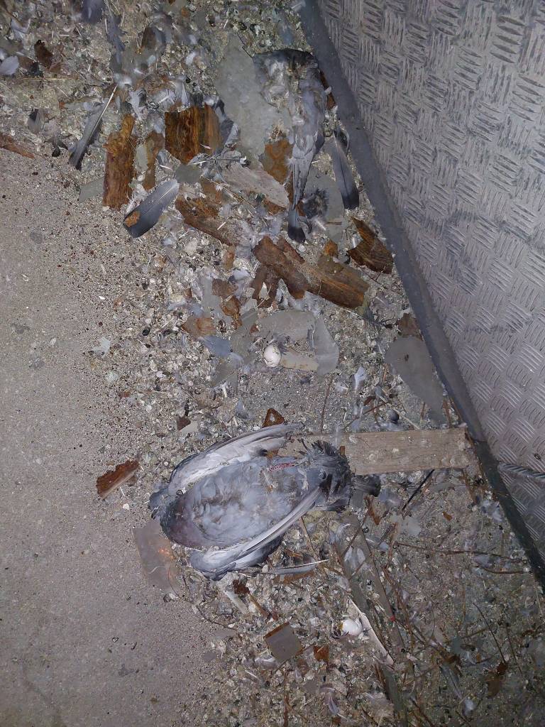 Ena od uporabnic družbenega omrežja Facebook pa je včeraj objavila fotografije, na katerih so mrtvi golobi na kup pometeni, kot smeti in ne (nekoč) živa bitja.