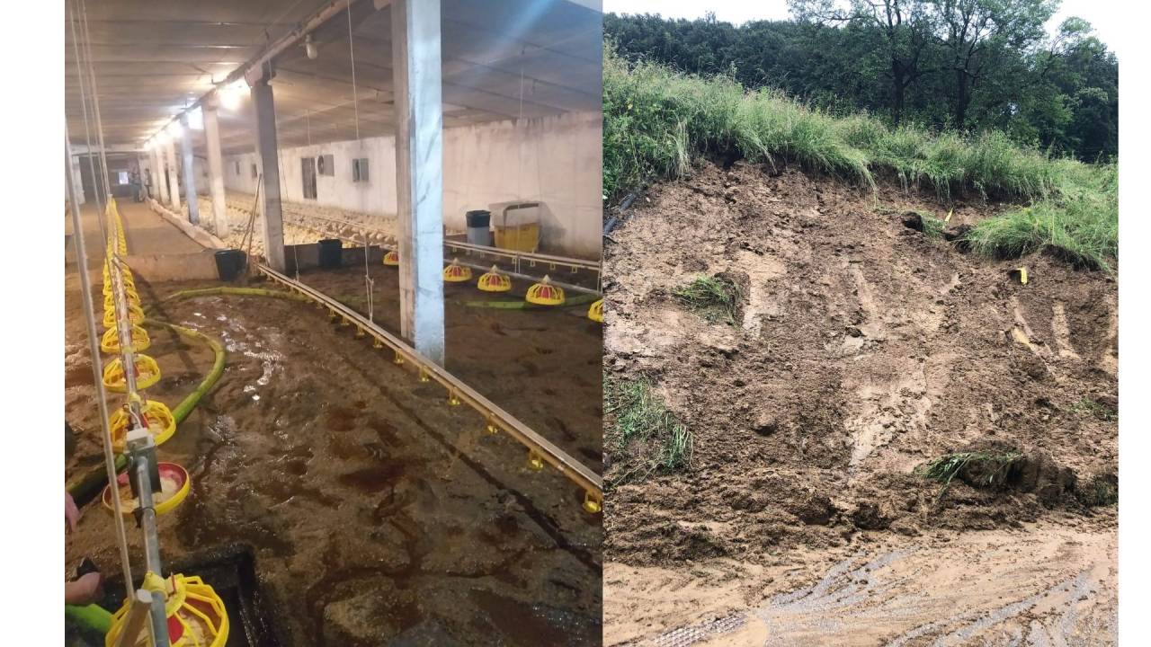 »Piščančja farma je v velikosti 700 kvadratnih metrov, približno. V njej je dvanajst tisoč piščancev, starih cirka en teden. Poplavljenih je bilo dobra polovica objekta, prečrpali smo okoli 50 kubikov meteorne vode,« pa še pove Žan Justinek, podpoveljnik Prostovoljnega gasilskega društva Slovenska Bistrica.