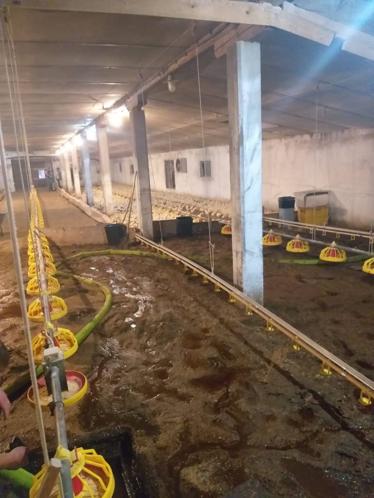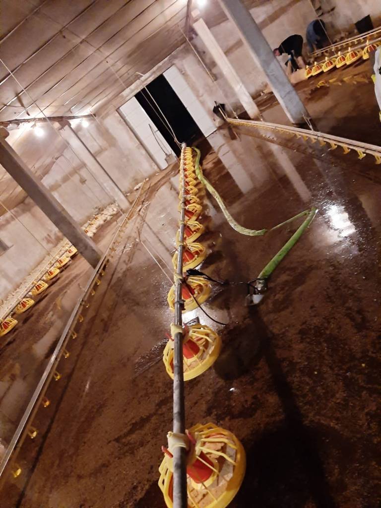 »Srečo smo imeli, da ni poplavilo celotnega hleva, tako da je v bistvu ena tretjina hleva ostala suha. Tja smo preselili piščance, gasilci so izčrpali vodo, potem smo to mokro steljo odstranili iz objekta,« pove Tomaž, nečak lastnika farme.