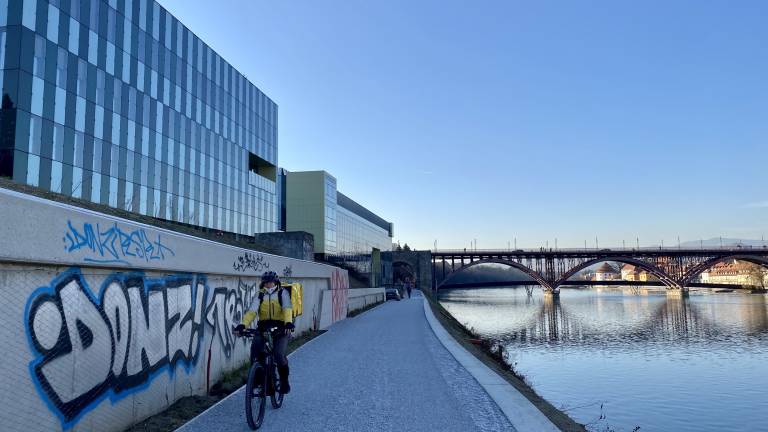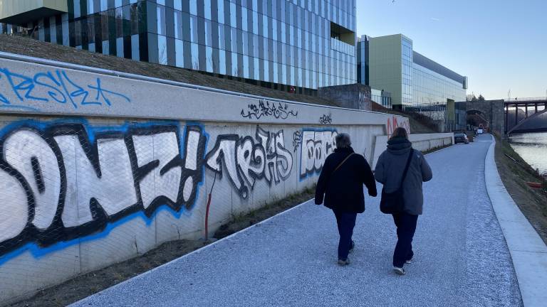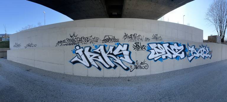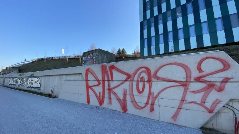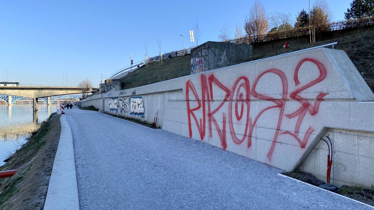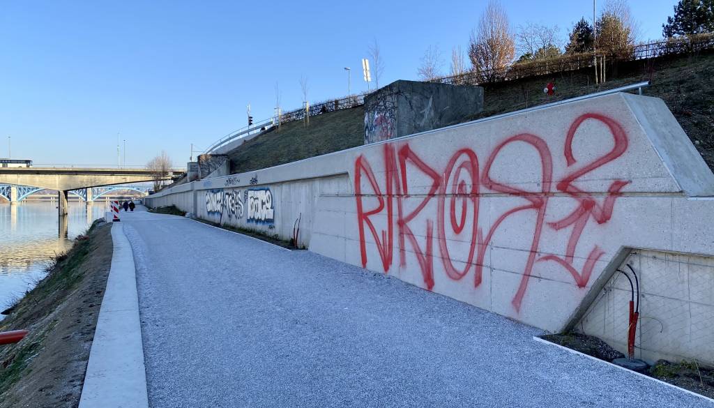 Vandali že porisali betonski zid ob kolesarski progi.