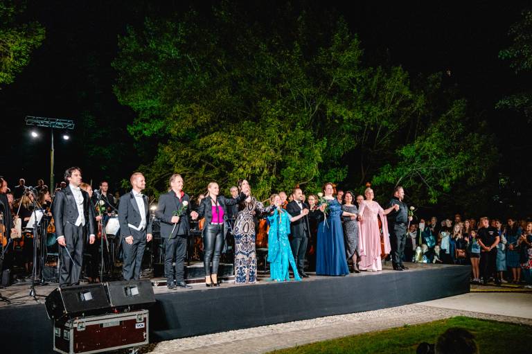 Park so napolnili glasovi solistk in solistov Sabine Cvilak, Rebeke Lokar, Petye Ivanova, Andreje Zakonjšek Krt, Valentine Čuden, Irene Petkova, Martina Sušnika, Tima Ribiča in Jaka Jurgeca.