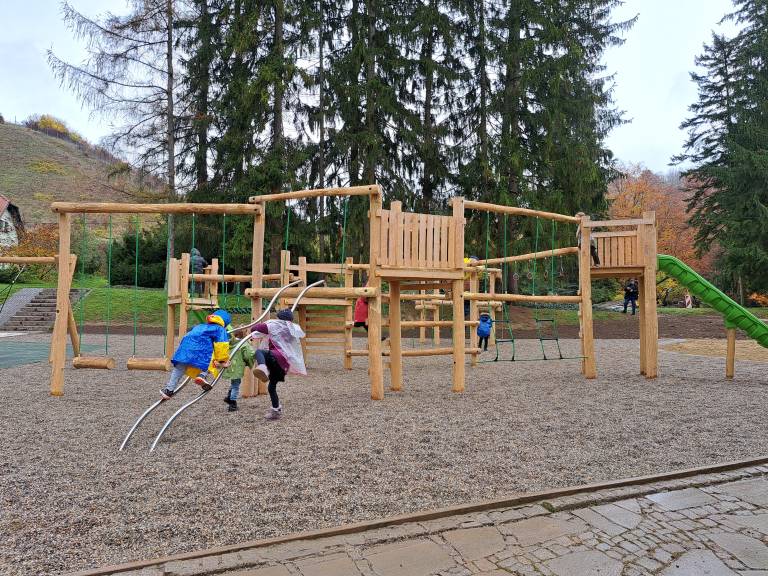 »Tukaj imamo tudi nova igrala, ki so primerna za gibalno ovirane,« dodaja Lešnik: »Razmišljali smo tudi na večjo starostno skupino otrok. Imamo tudi motorična igrala, ki so primerna za otroke do 14 let.«