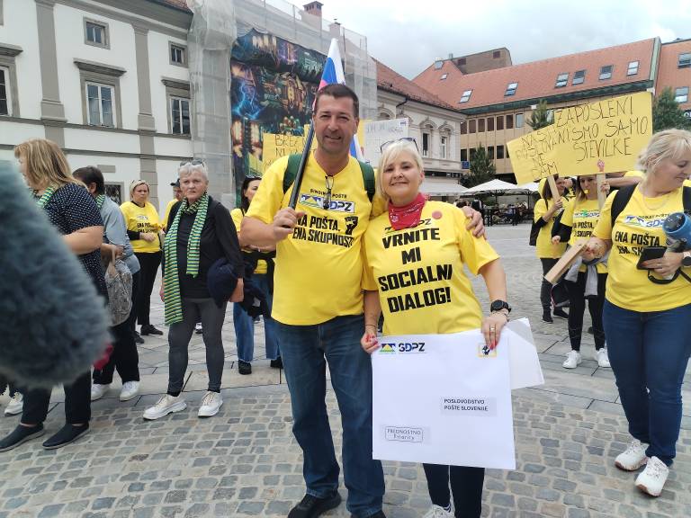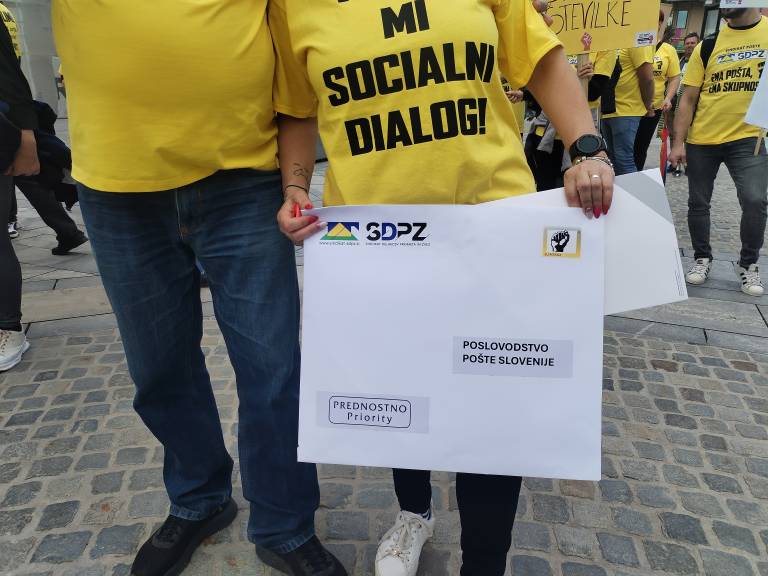 V veliki kuverti, na kateri je pisalo prednostno, soo poslovodstvu na sedežu Pošte Slovenije na Slomškovi ulici danes predali svoje zahteve.