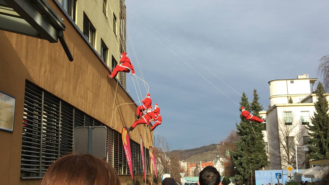 Že tradicionalno so se spustili s četrtega nadstropja Klinike za pediatrijo mimo oken, kjer so sloneli najmlajši pacienti. Tik pred prazniki so jim tako olepšali bivanje v bolnišnici, ob tem pa jih tudi obdarili.