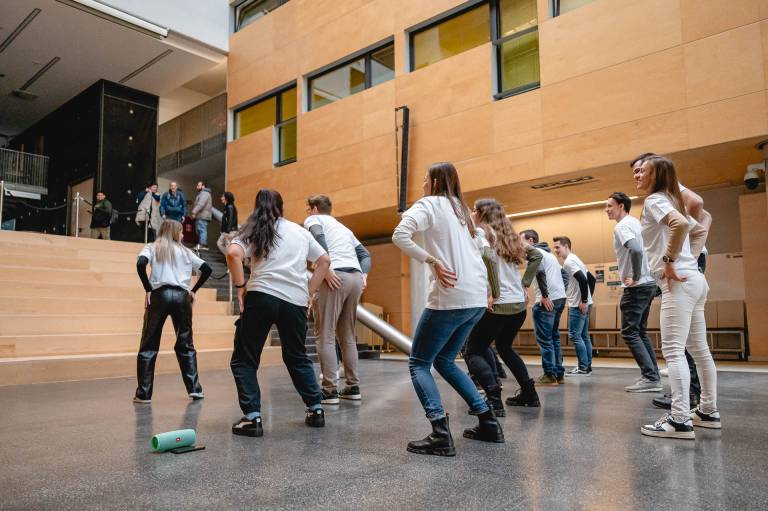 Flash mob na mariborski fakulteti: Sproščeno, a močno sporočilo spodbuja mlade k odločanju.