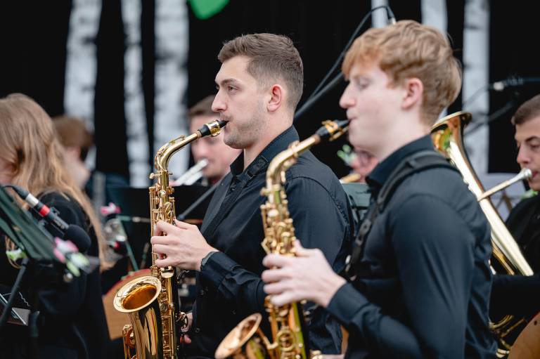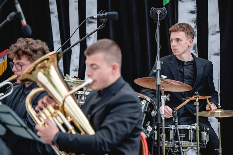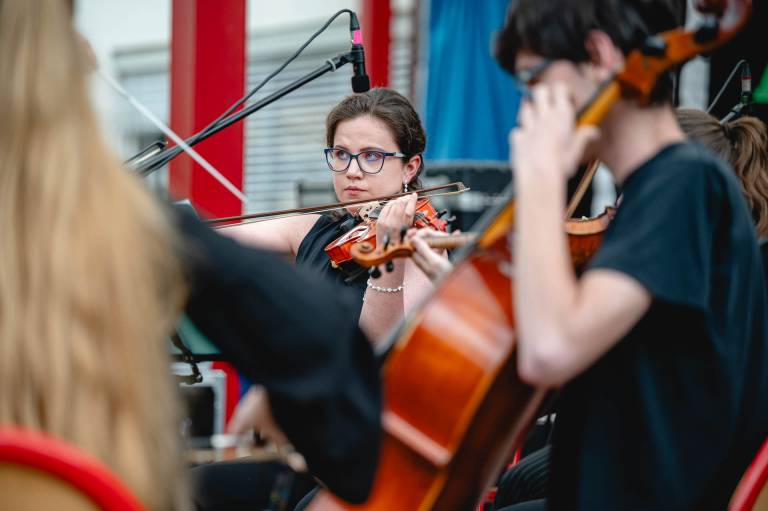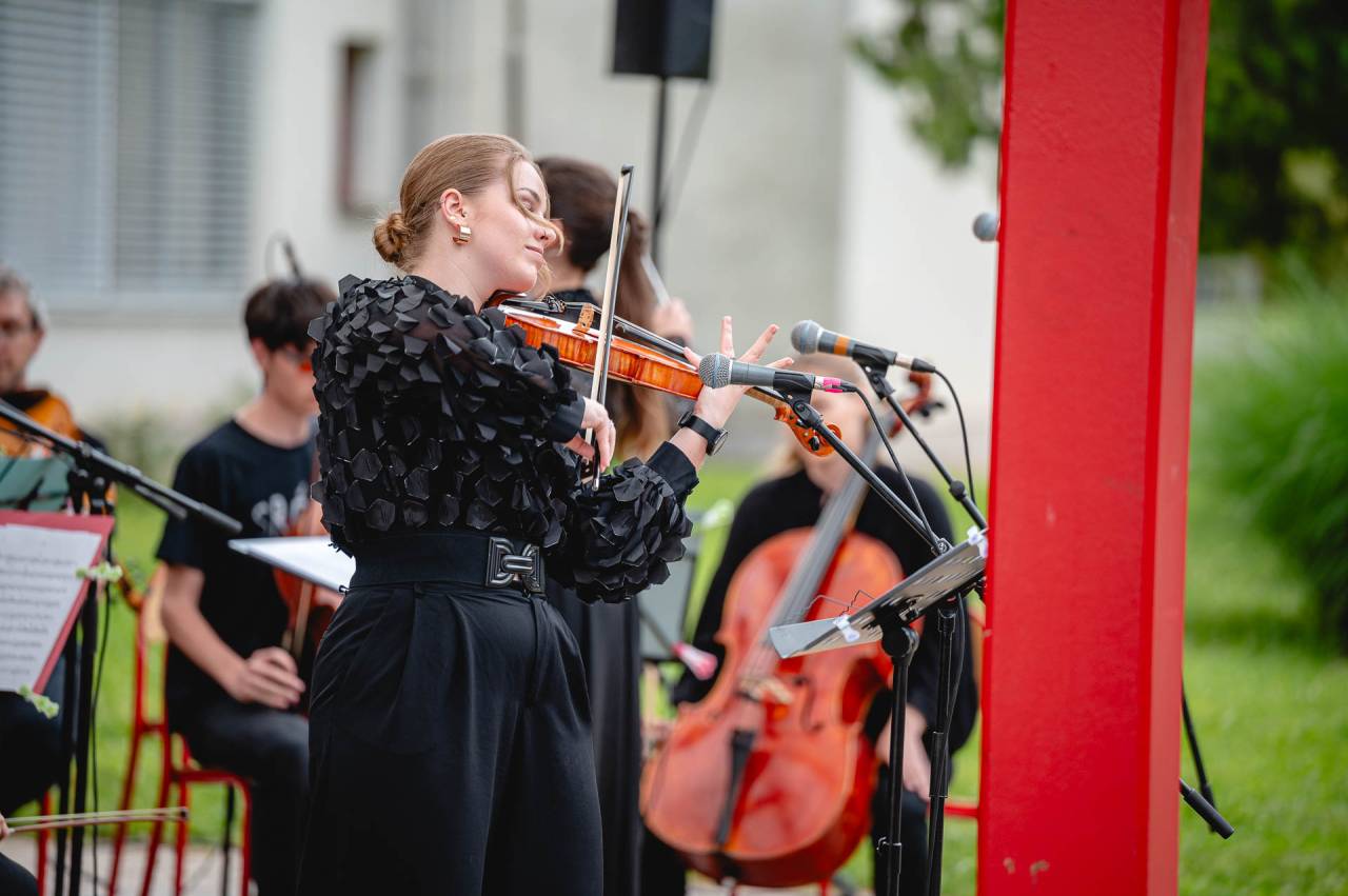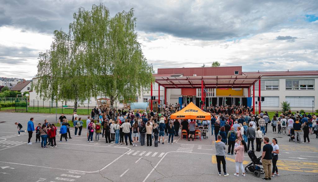 Glasbeniki Študentskega orkestra Maribor so na svoje instrumente ponovno za dober namen zaigrali pod brezami OŠ Gustava Šiliha Maribor