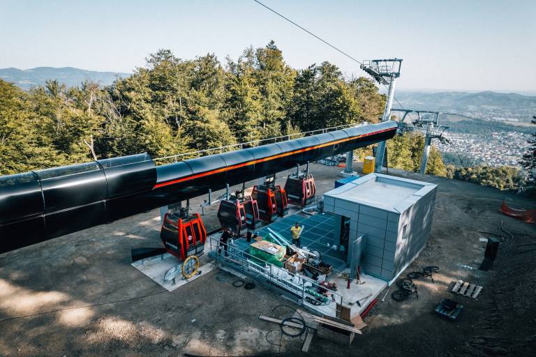Gradnja vmesne postaje krožne kabinske žičnice poteka v skladu s terminskim planom. Včeraj so opravili poskusno vožnjo kabin skozi vmesno postajo.