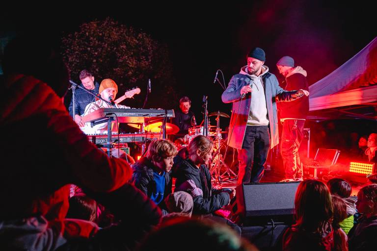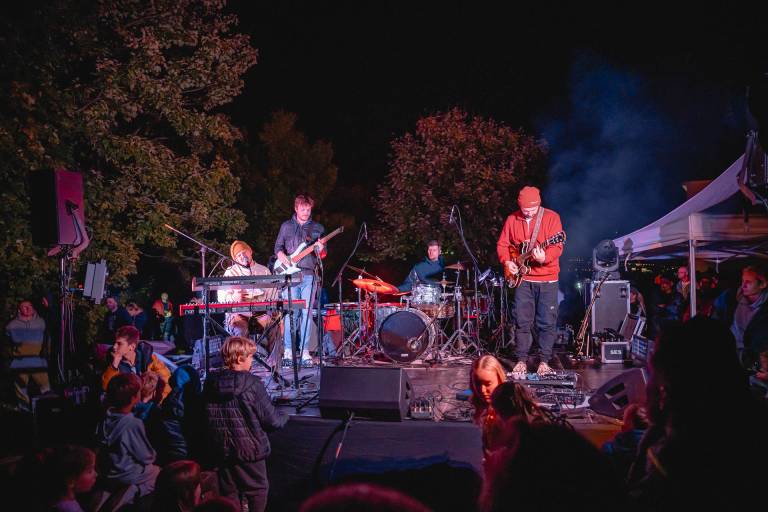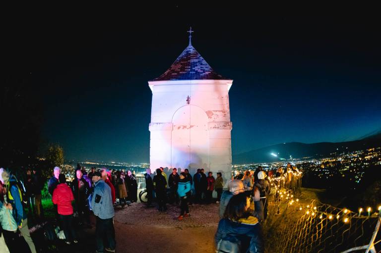 Obiskali smo Piramido, kjer so nastopili Emkej, Leopold I. in Žan Hauptman z bendom. Pohod se je začel ob 18. uri, ko smo se od paviljona v Mestnem parku z lučkami podali po zaviti poti proti prizorišču z dih jemajočim razgledom.