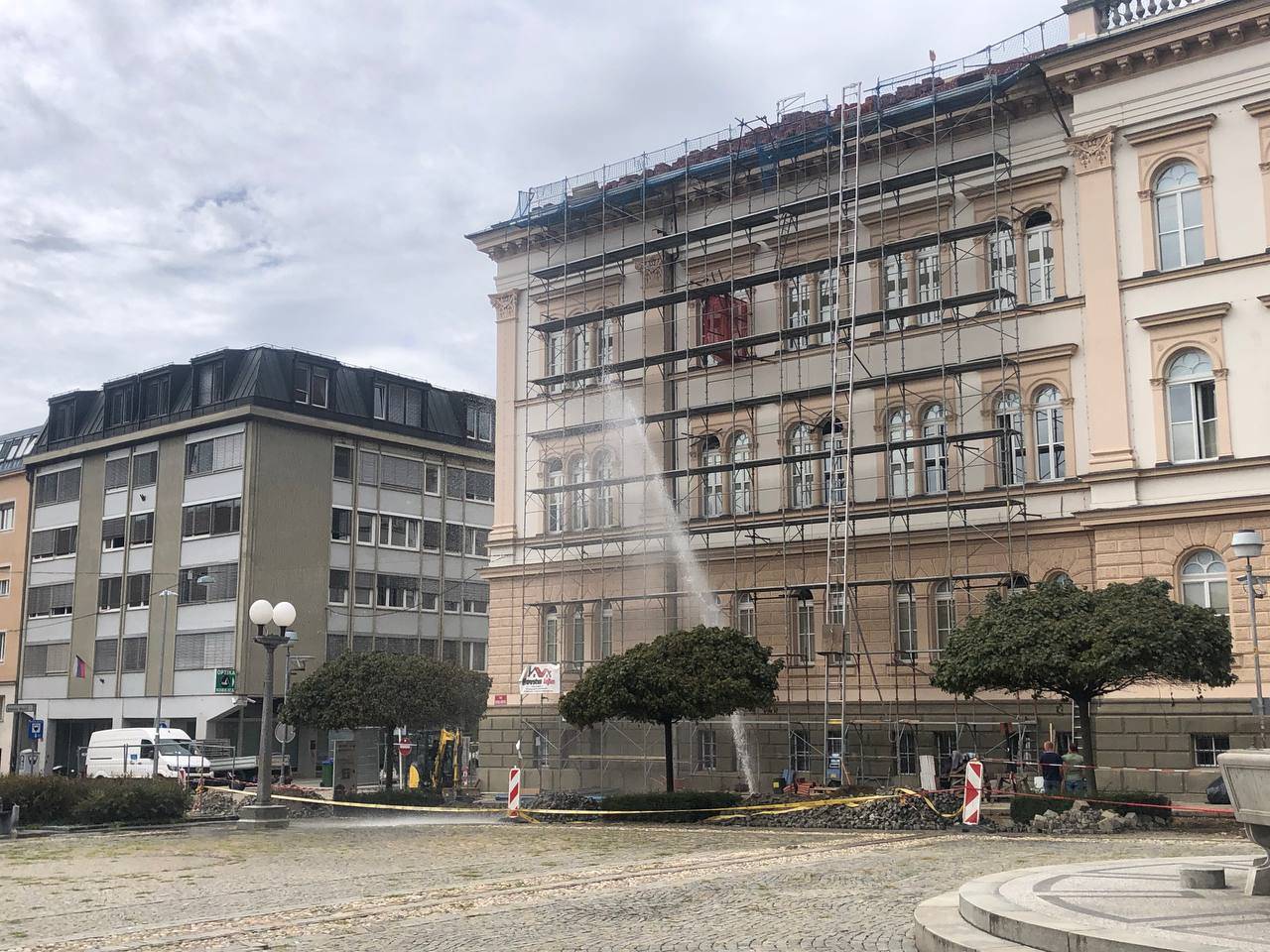 Delavci so med deli na Trgu generala Maistra v središču mesta, natančneje pred Prvo gimnazijo, predrli vodovodno cev, sporočajo bralci Mariborinfo.