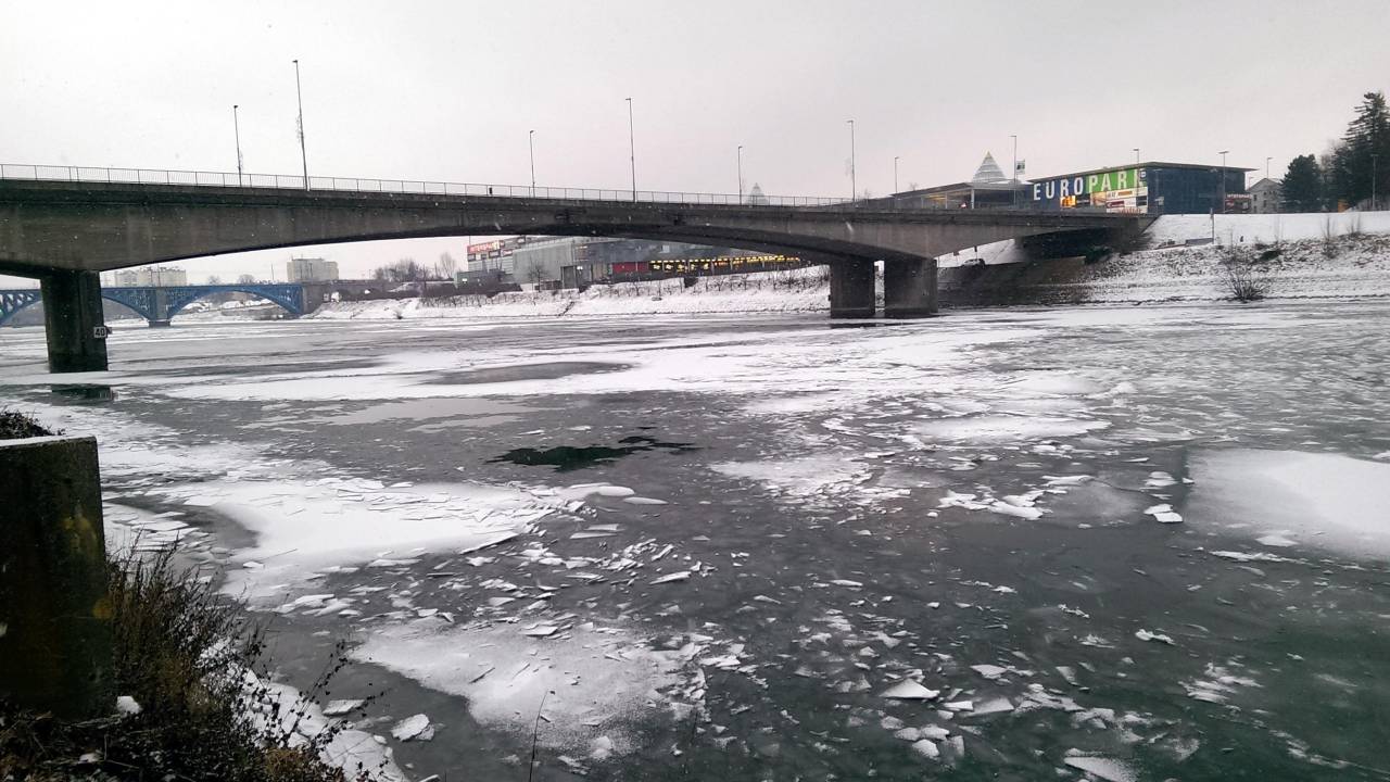 Reka Drava je v Mariboru na nekaterih mestih zaledenela.