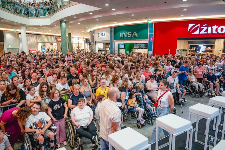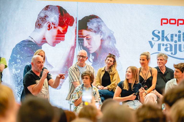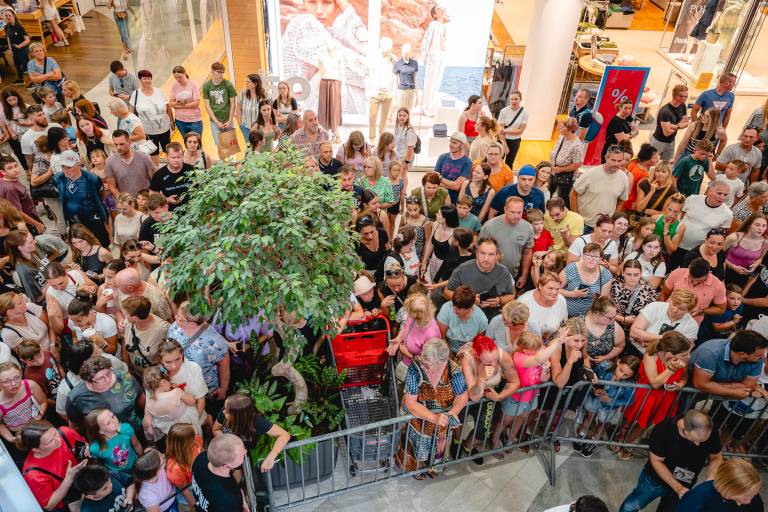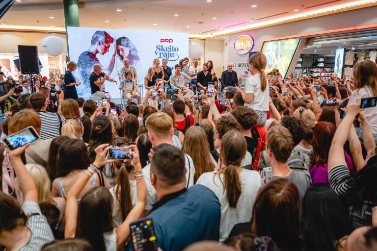 Pred trgovino Hervis je potekalo srečanje z oboževalci, kjer so se obiskovalci lahko pobliže srečali z igralci priljubljene serije Skrito v raju, ki jo že drugo leto predvaja POP TV.