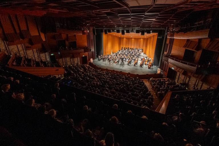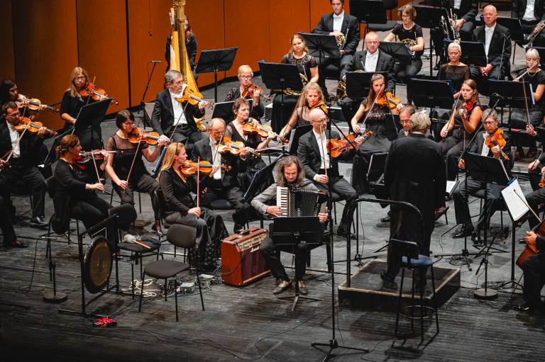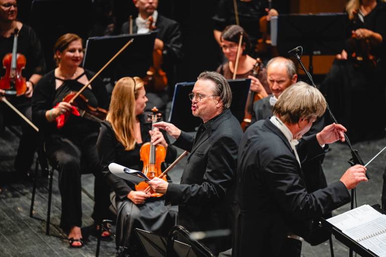 Pod taktirko dirigenta Marka Letonje sta Simfonični orkester in Ženski zbor Slovenskega narodnega gledališča Maribor ustvarila razkošno zvočno kuliso.