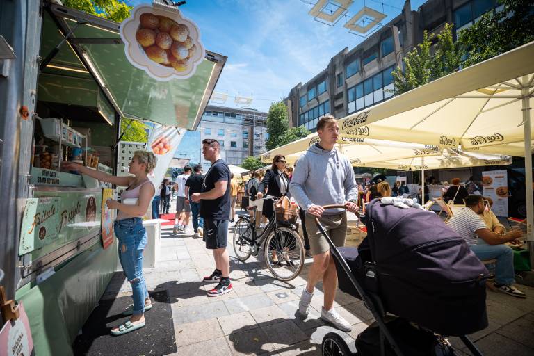 Že včeraj se je na Trgu Leona Štuklja začel mednarodni Food Truck Festival, ki ga lahko obiščete še danes in jutri do 23. ure.