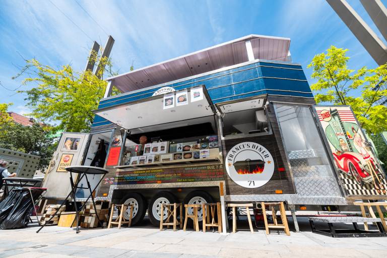 Okoli 15 tovornjakov ponuja grižljaje lokalne, etnične, BBQ in zdrave kuhinje. Skunk Urban Kitchen na primer pripravlja bogate sendviče, HabaHaba pite in priljubljene smash burgerje s krompirčkom, Alexander sočne burgerje.