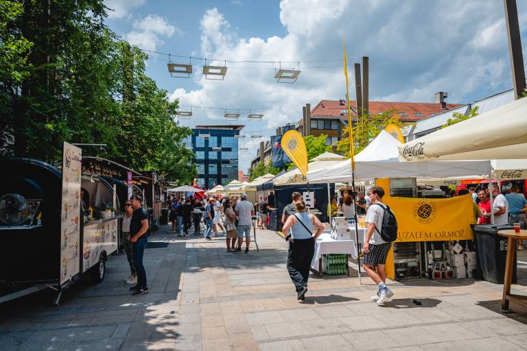 Na festivalu so najboljši kuharski mojstri in food trucki iz Slovenije, Hrvaške, Avstrije in drugih držav, ki obiskovalcem ponujajo kulinarične užitke, ki si jih lahko privoščite še danes in v soboto.