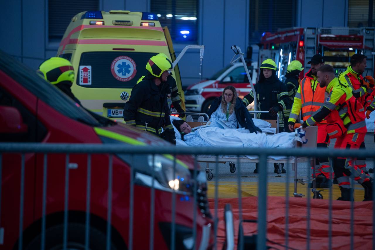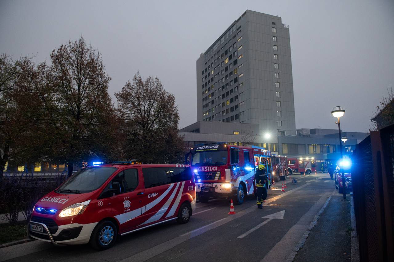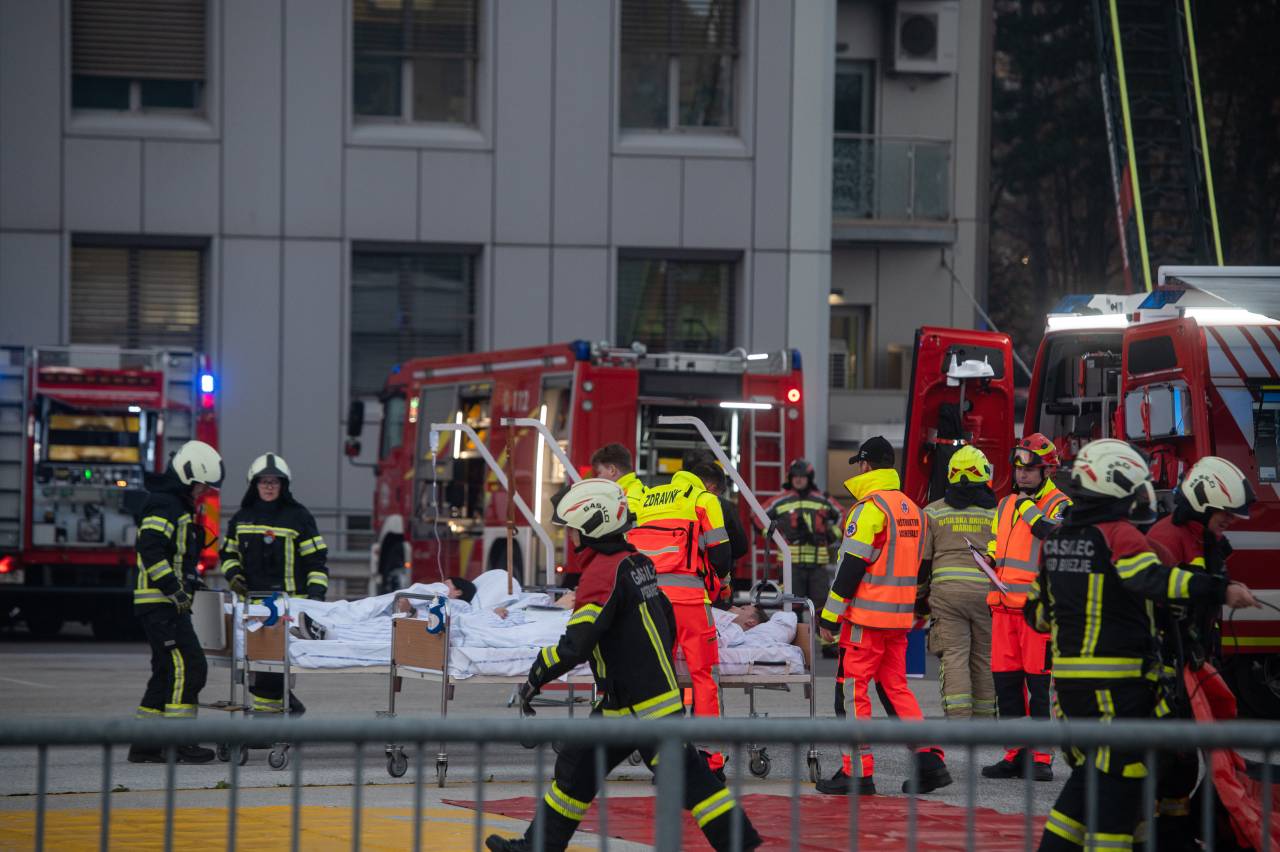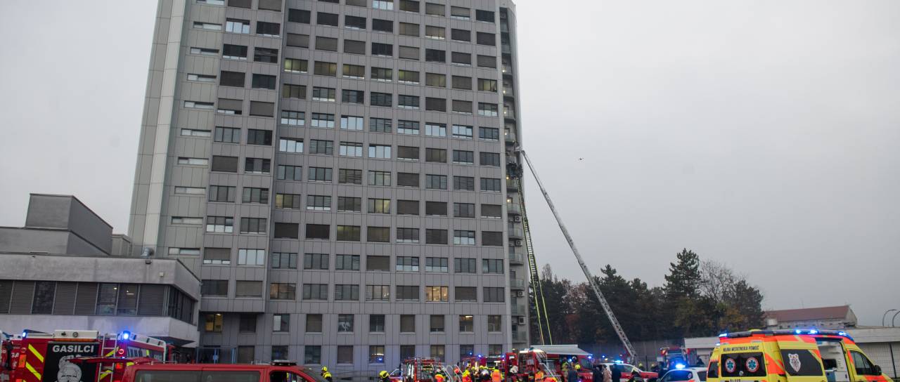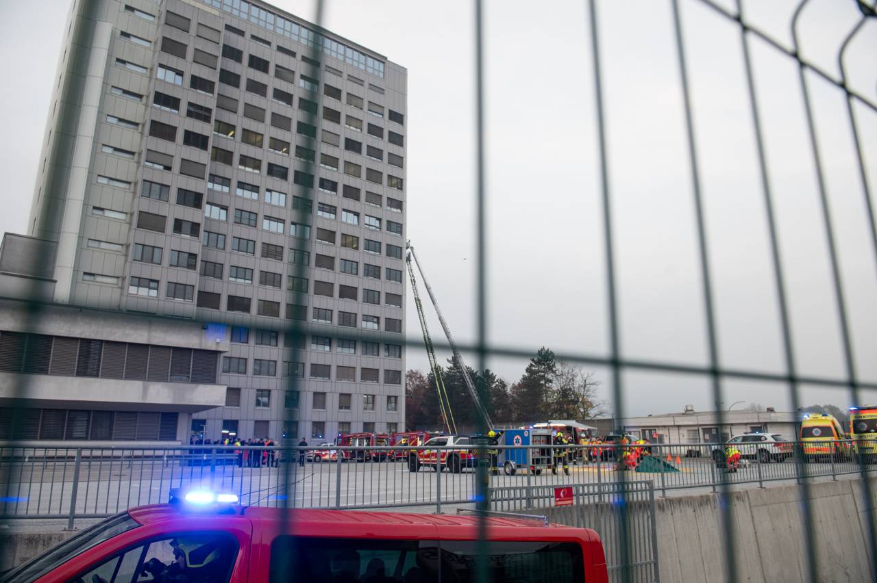 Požar in zadimljenost kirurške stolpnice ter evakuacija poškodovancev - vse to je bilo le del gasilske vaje.