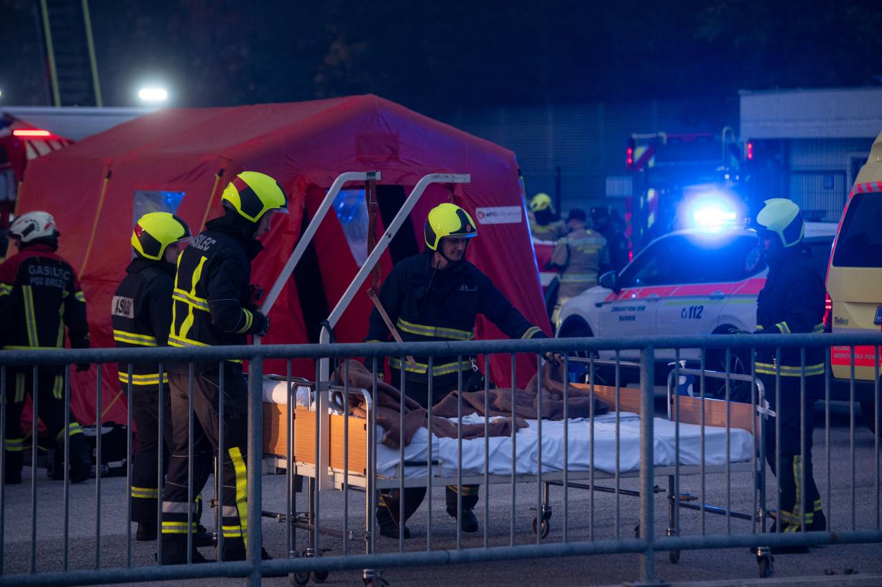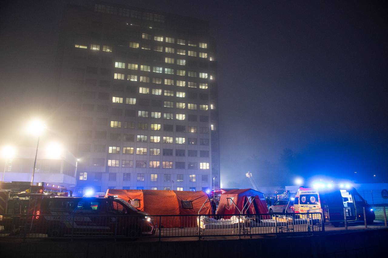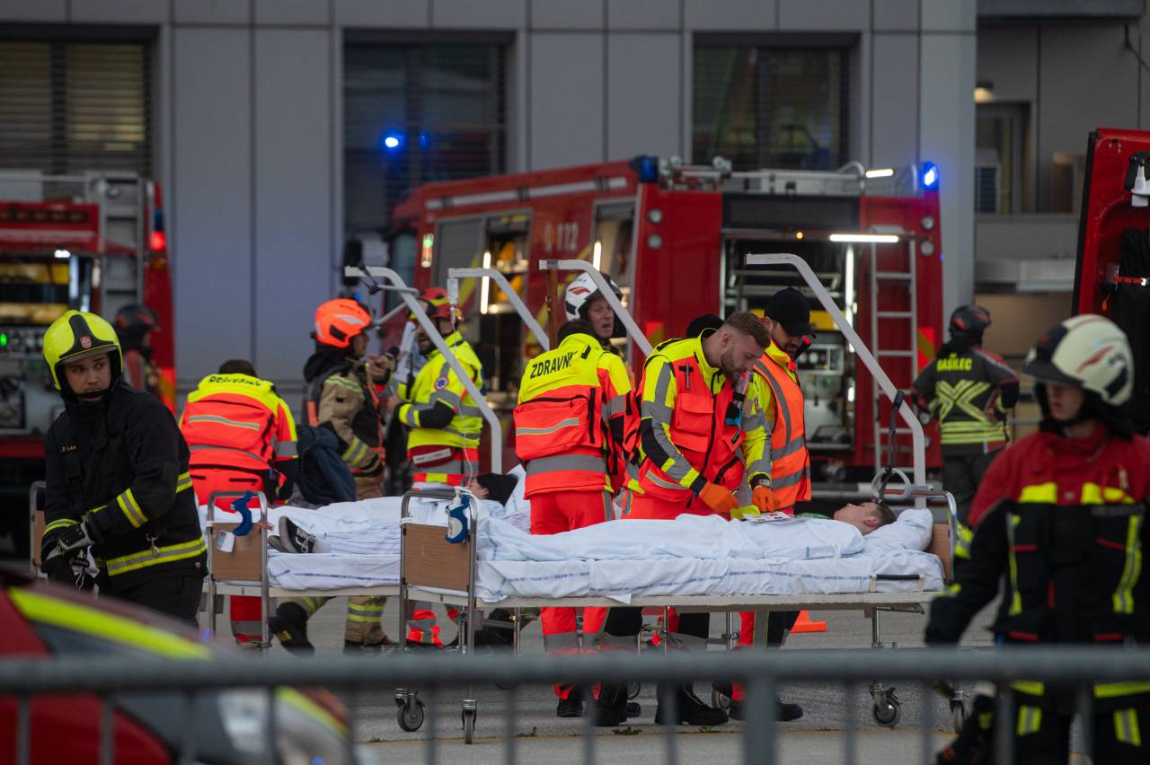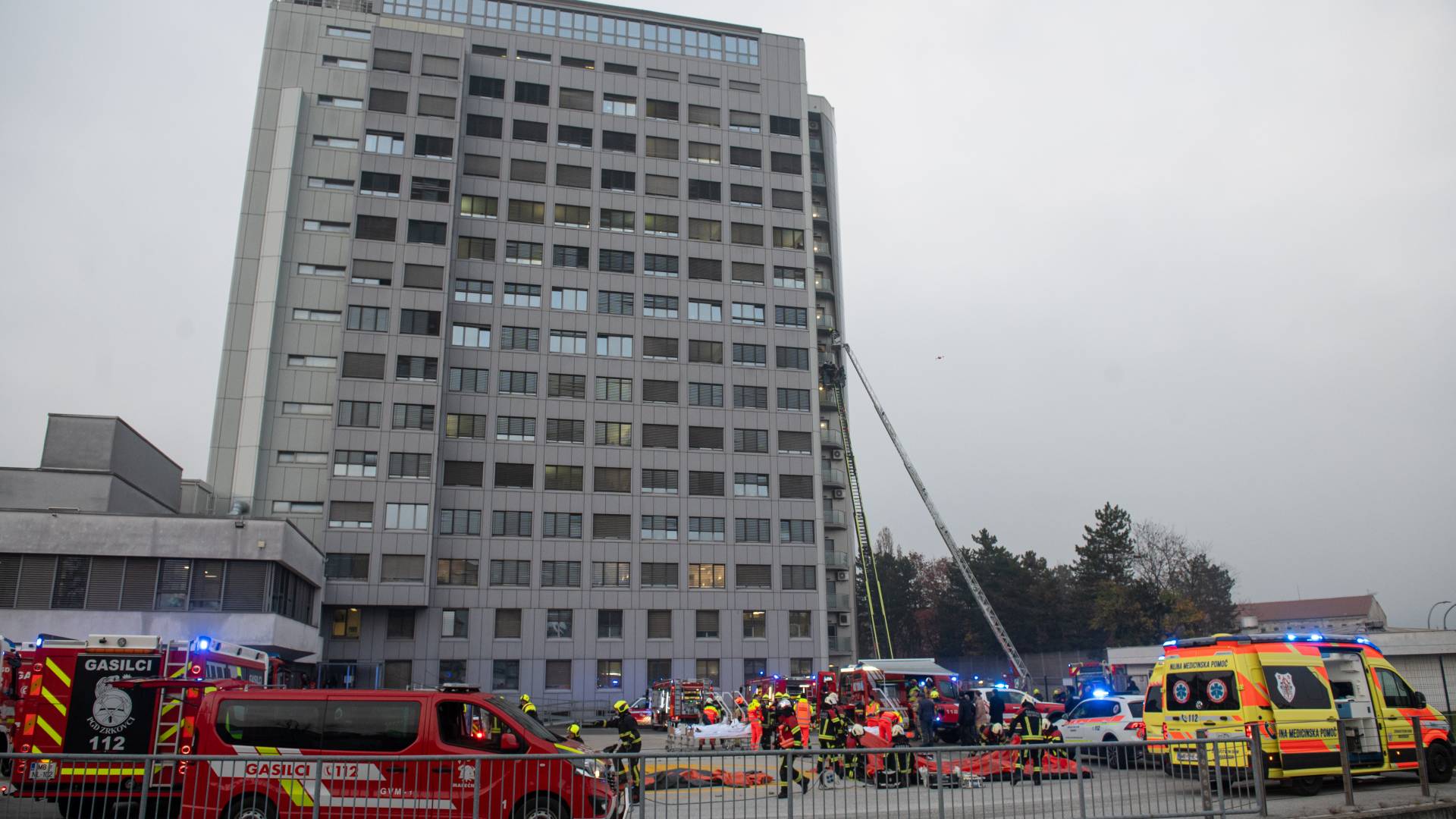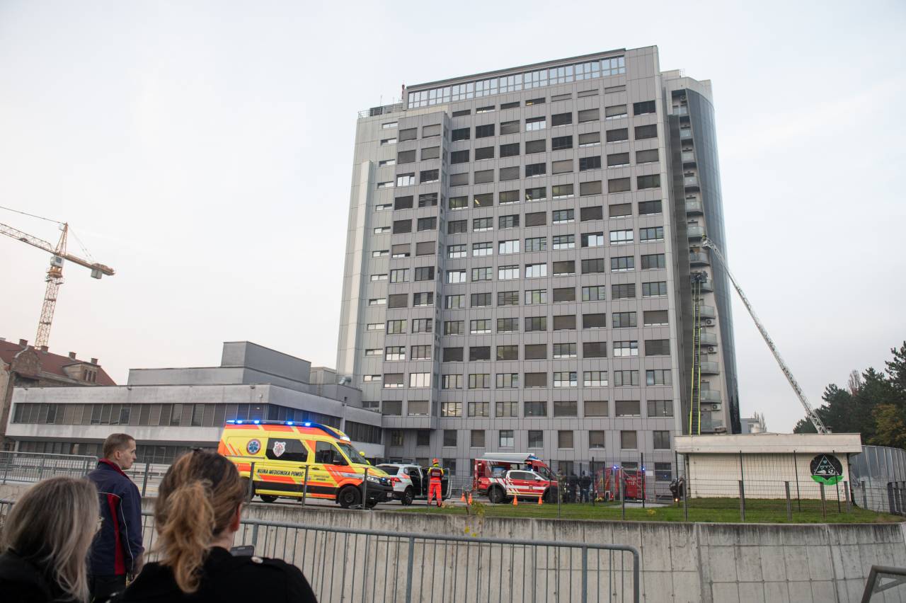 Požar in zadimljenost kirurške stolpnice ter evakuacija poškodovancev - vse to je bilo le del gasilske vaje.