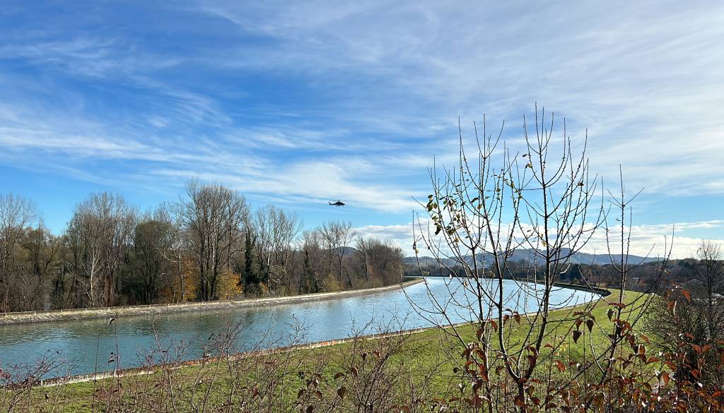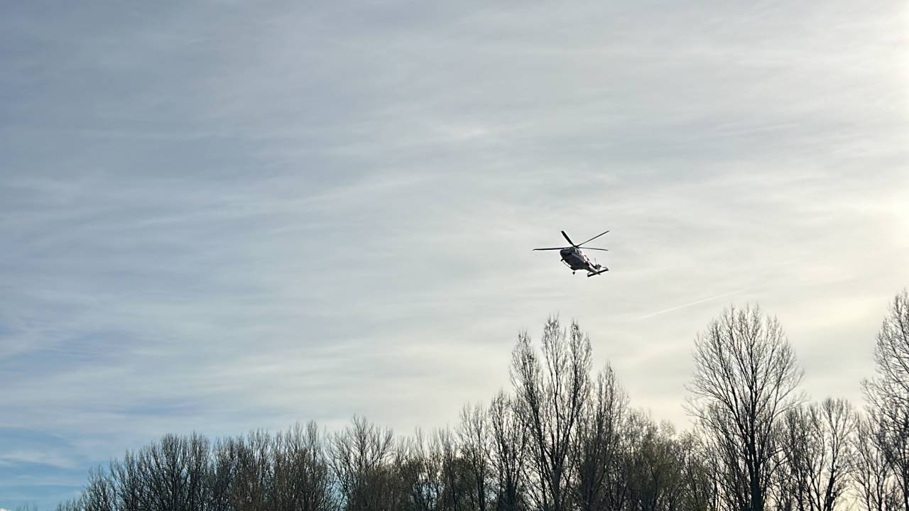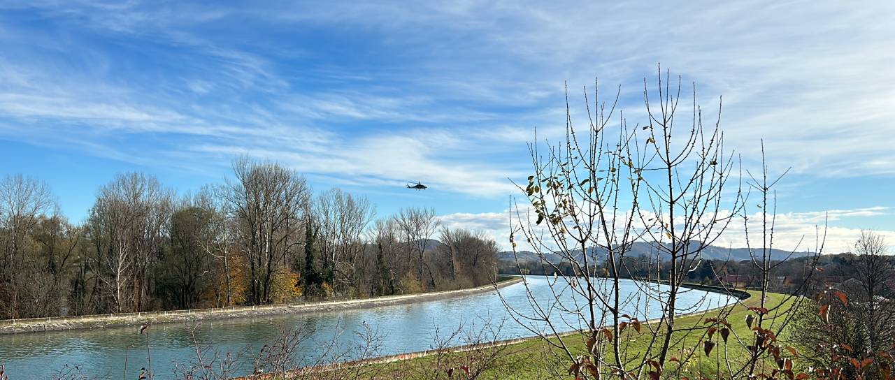 Helikopter pri Malečniku, med staro strugo in kanalom Drave.
