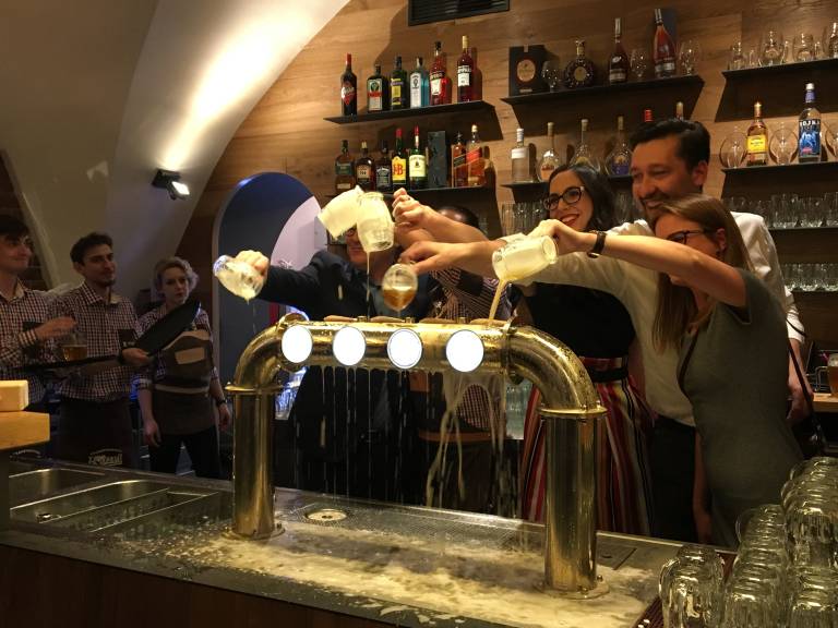 Krstili so sod in pipe za pivo, ki bodo vsak dan polnile vrčke in razveseljevali obiskovalce pivnice.