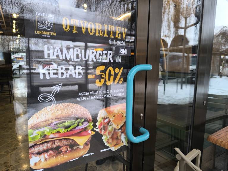 Danes, 9. januarja, med 10. in 16. uro ponujajo 50-odstotni popust na hamburgerje in kebab. Akcija velja za največ dve porciji na osebo.