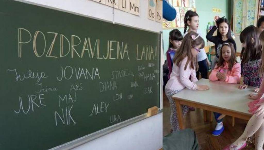 Sošolci so že komaj čakali, da se med njih vrne Lana. Na steni pred učilnico so jo pričakali srčki, balončki, risbice in lepe misli. Sošolka se je prijazno ponudila, da ji v razred odnese torbo. Prijateljice so hitele s pripovedovanjem, katera ji je izdelala katero risbico. Na tabli jo je pričakal napis dobrodošlice. Ko so ji sošolke in sošolci podarili šopek spomladanskih cvetlic, pa Lana sreče in navdušenja ni več mogla skriti. Emocije so bile za 8-letnico premočne in solzice sreče so prikukale na dan. Njihovo srečanje je bilo nadvse prisrčno. Poglejte.