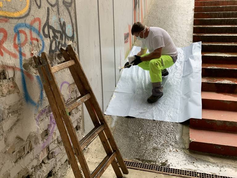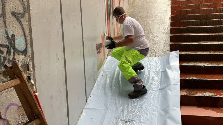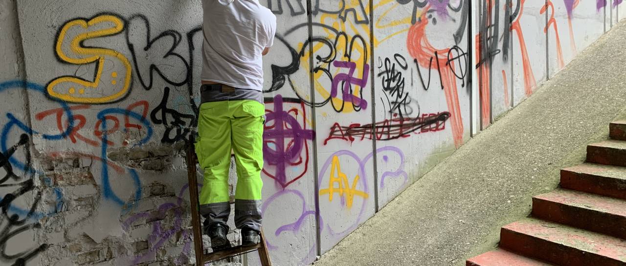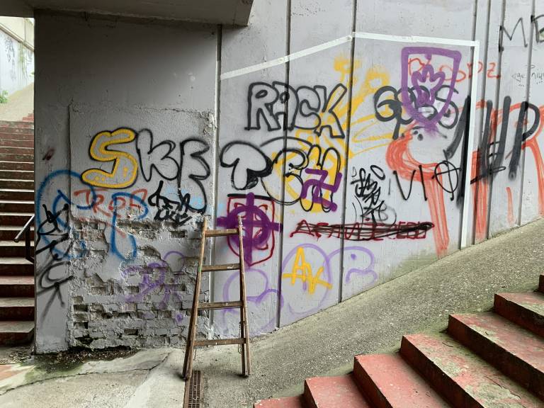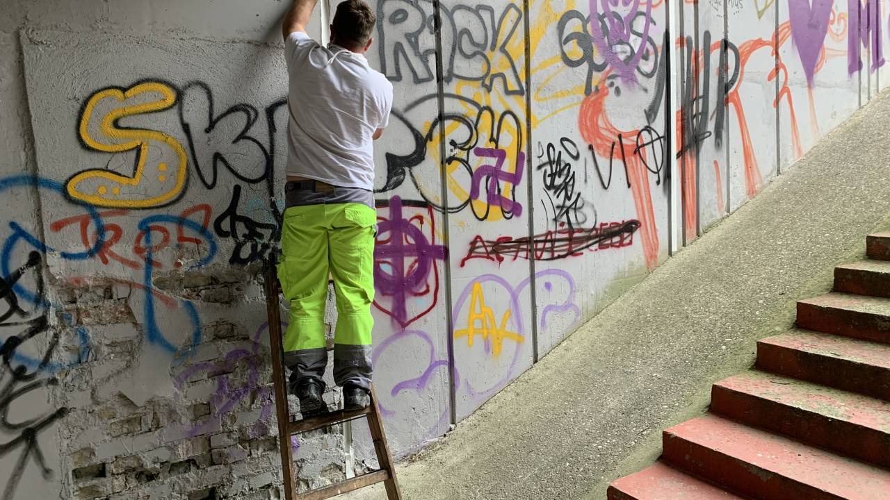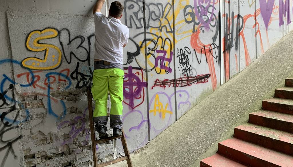 V Mariboru so danes nadaljevali z odstranjevanjem grafitov s sovražno vsebino, med drugim so prepleskali tudi nacistični simbol pri podhodu pri Tržnici Tabor.
