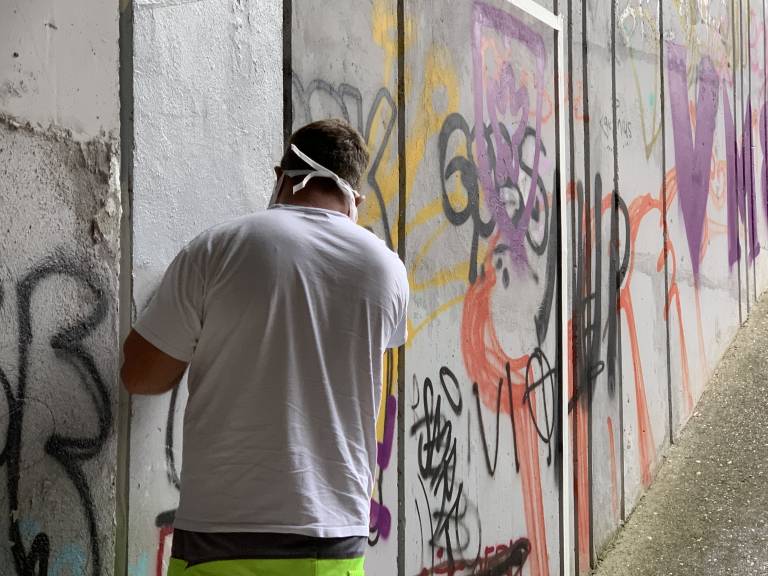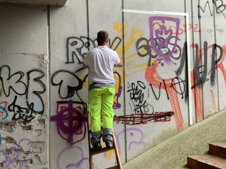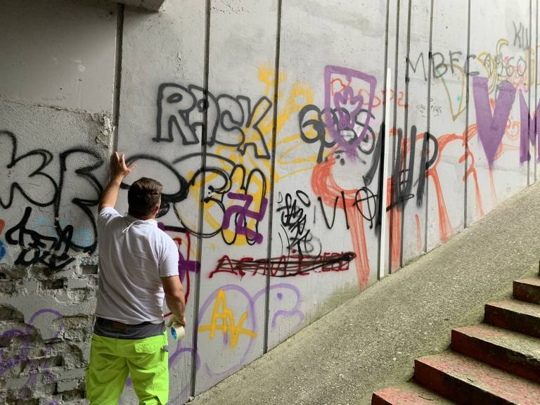 V okviru čistilne akcije so v Mariboru danes sovražnih grafitov čistili tudi zidove, med drugim so prepleskali nacistični simbol pri podhodu pri Tržnici Tabor na križišču Kardeljeve ceste in Ceste proletarskih brigad, odstranili pa so tudi nekaj grafitov na urbani opremi, ki je v lasti Mestne občine Maribor na Maistrovem trgu.