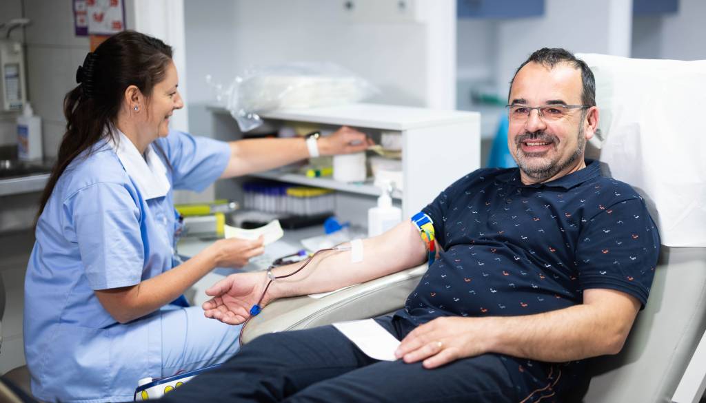 Krvodajalec, Mariborčan Jože Damiš je danes v Centru za transfuzijsko medicino Univerzitetnega kliničnega centra Maribor že stotič daroval svojo kri.