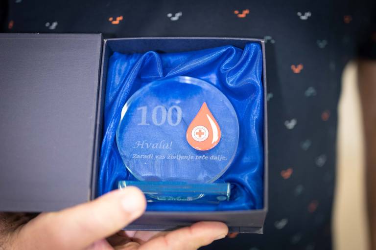 »Vsakič, ko kdo daruje kri stotič, je to za nas praznik. Jože je danes 217. vitez – na žalost so med njimi redke ženske, ker so pogoji zanje zahtevnejši.«