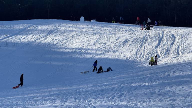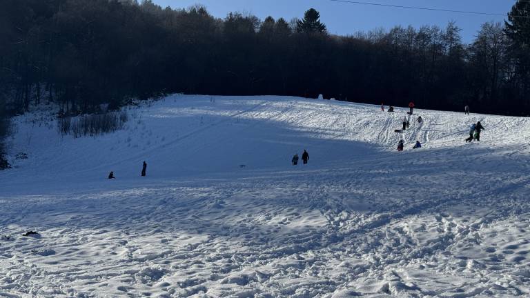 Na fotografijah, ki smo jih prejeli v uredništvo, je videti nasmejane otroke, zavite v bunde in kape, kako se s sanmi spuščajo po zasneženih pobočjih ter uživajo v pravih zimskih radostih.
