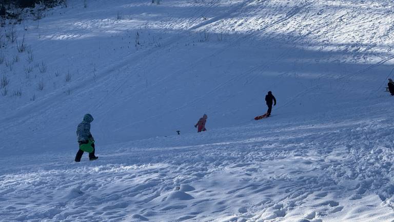 Sveža snežna odeja je na bele strmine pod Ledino privabila najmlajše, ki so izkoristili vsak trenutek za brezskrbno igro na snegu.