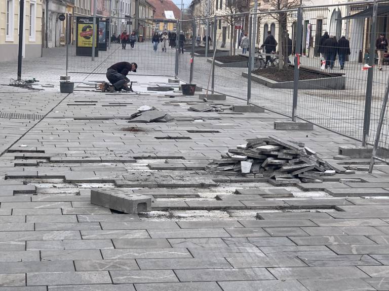 Na Glavnem trgu se že leta vleče zgodba o poškodovanih tlakovcih, ki jih pristojni na vsakih nekaj mesecev znova menjajo. Komaj je ena sanacija končana, že se pojavijo nove razpoke in posedeni deli, ki zahtevajo novo.