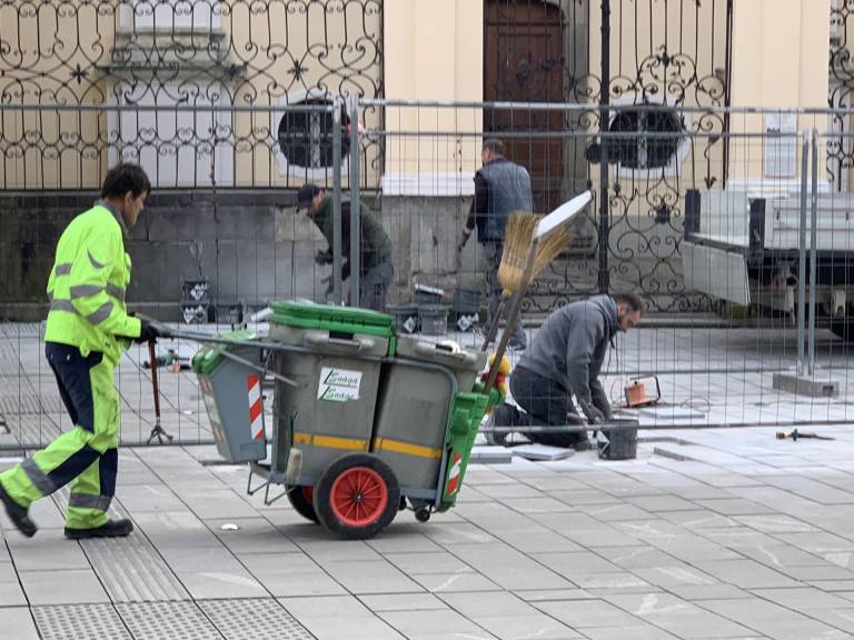 Na trgu so sicer položene kombinirane plošče 'topstone', ki imajo na zgornji pohodni površini tri centimetre kamnitega materiala, prilepljenega na petnajst centimetrov debel betonski del tlaka.