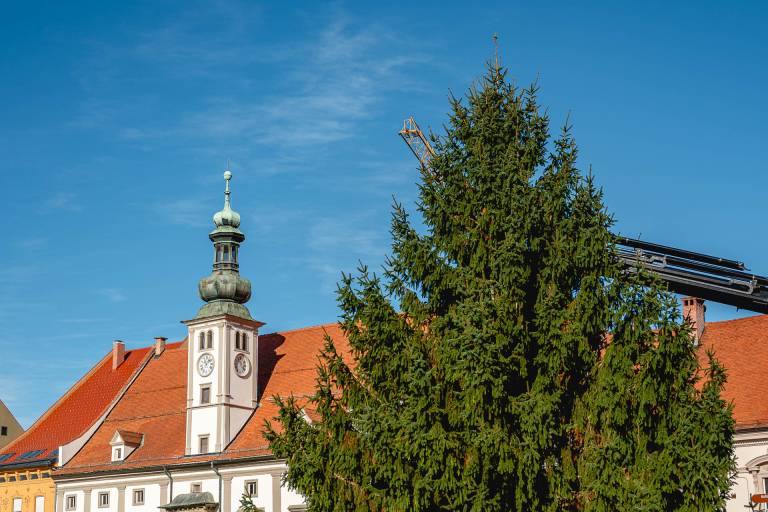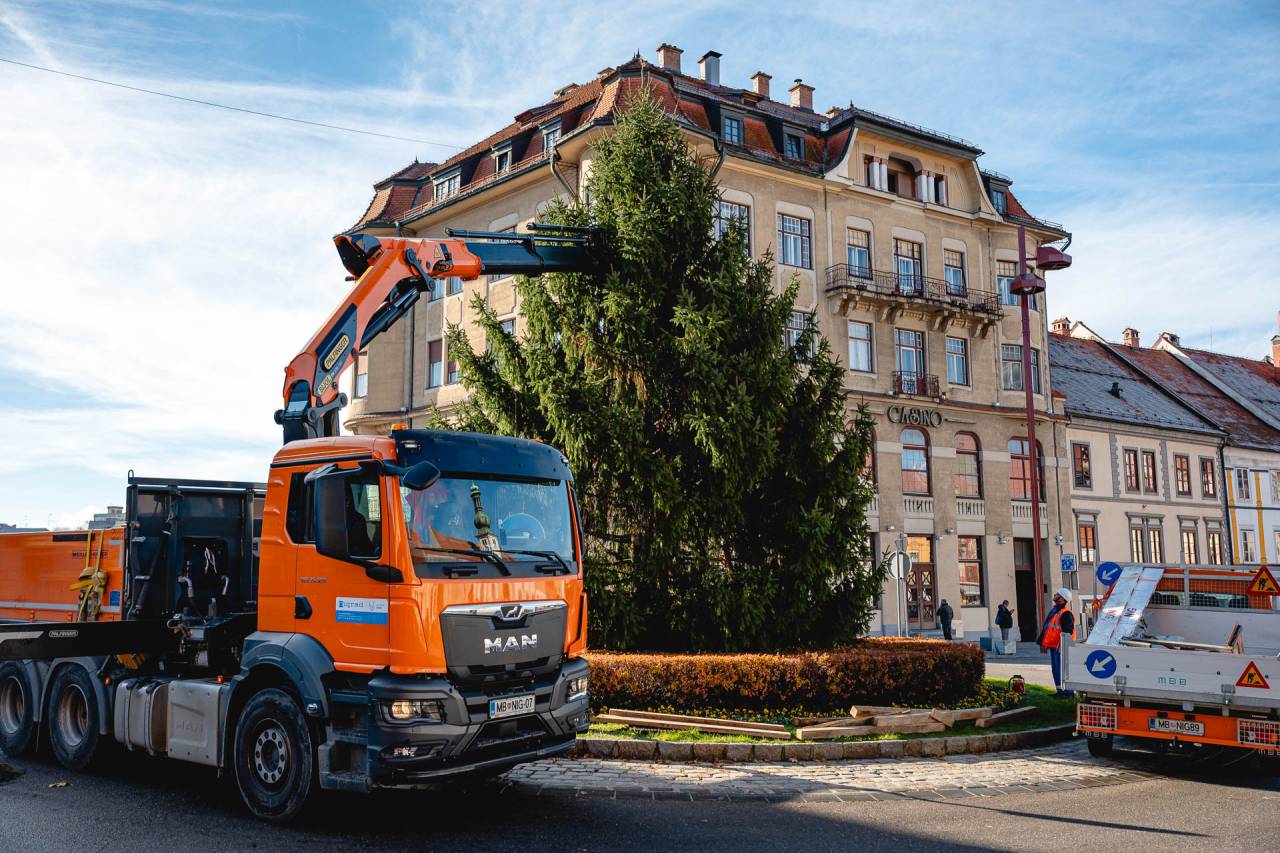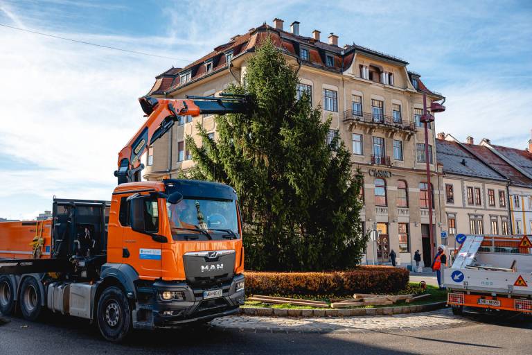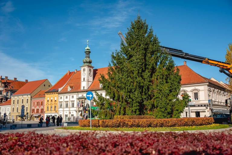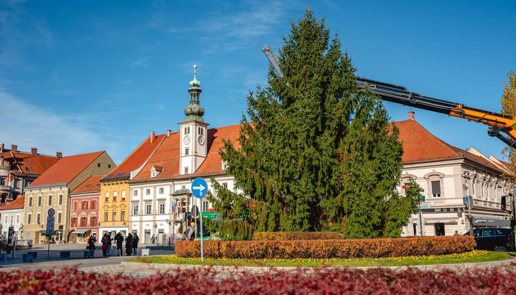 V Mariboru se danes začenja pravo praznično vzdušje. Na Glavnem trgu že potekajo dela za postavitev praznične smreke, ki bo kmalu zasijala v tisočerih lučkah.