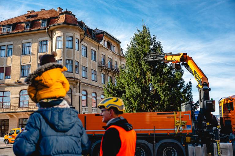 Praznična drevesa v Mariboru podarijo občani. Ko dobijo predlog, gredo drevo pogledat.