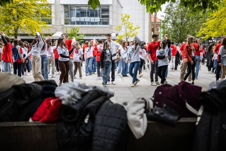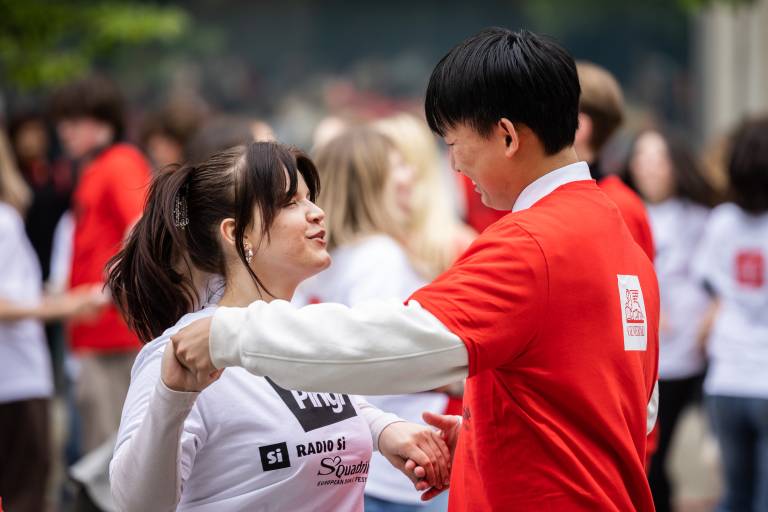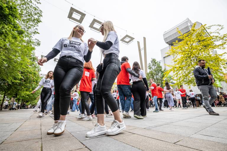 Natanko ob 12. uri so mariborski maturanti v središču mesta na Trgu Leona Štuklja zaplesali tradicionalno ulično četvorko, s katero so se simbolično poslovili od srednješolskih klopi.