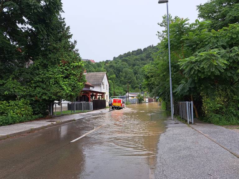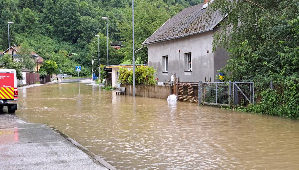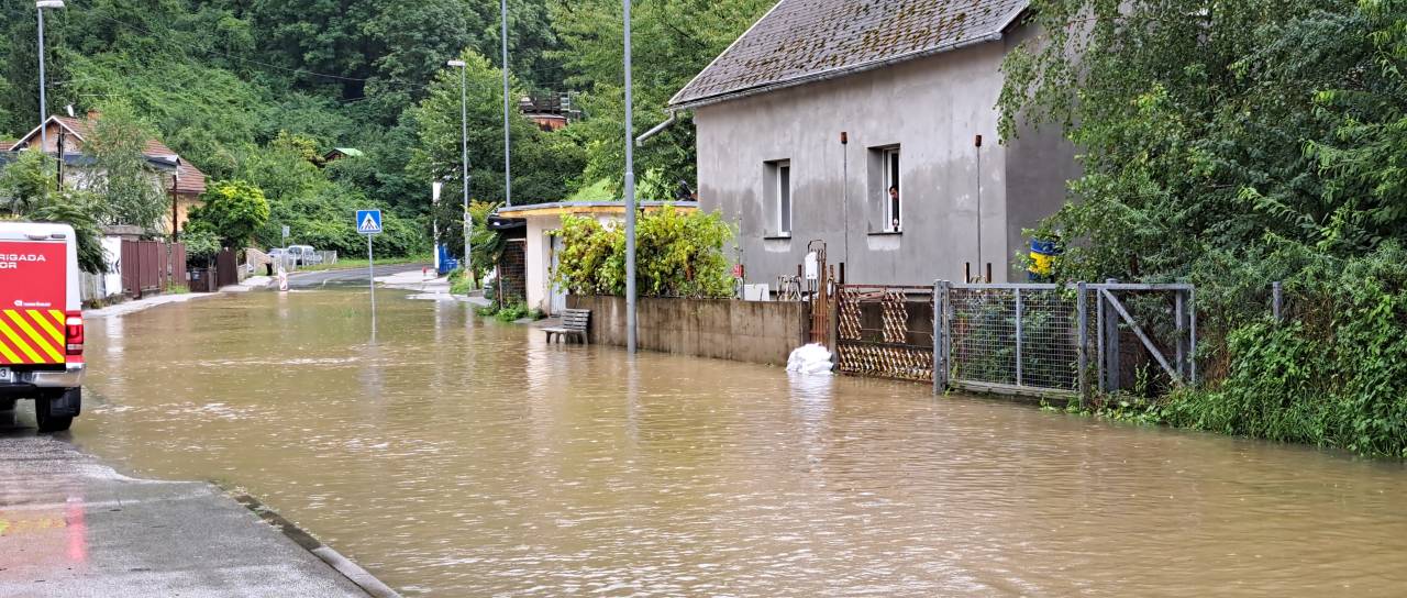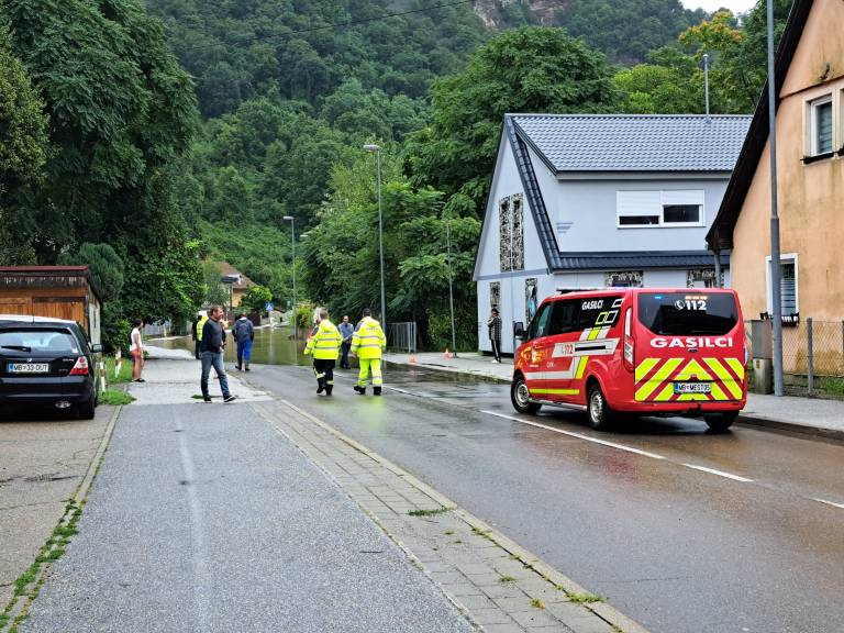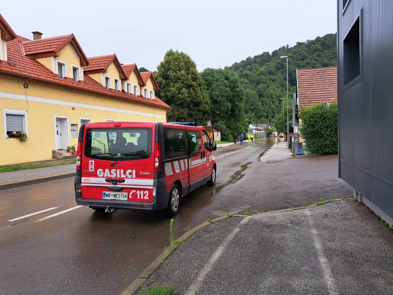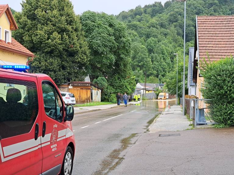 Poplavljena je cesta, na terenu so gasilci, domačinom pomagajo tudi s protipoplavnimi vrečami.