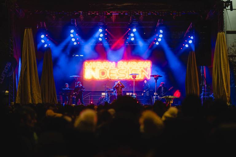 Praznično dogajanje v sklopu Čarobnega Maribora se nadaljuje. Sinoči je za mikrofon stopil Miran Rudan, na odru pa so mu družbo delali člani skupine InDesign.