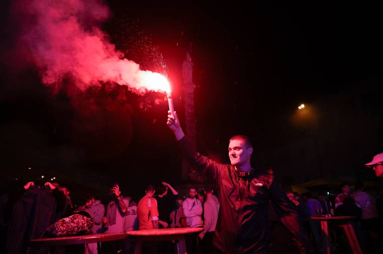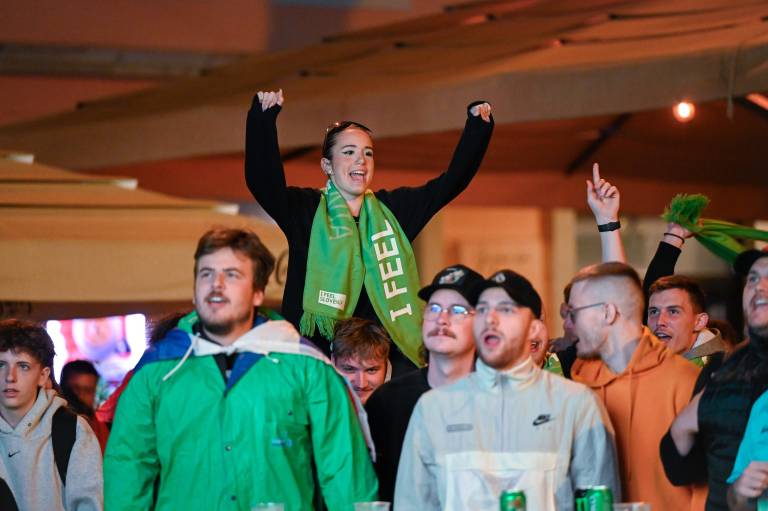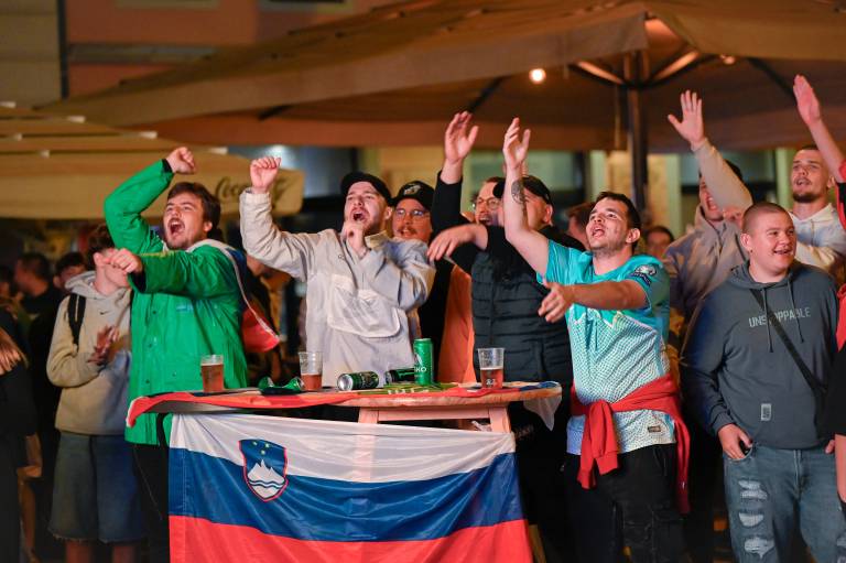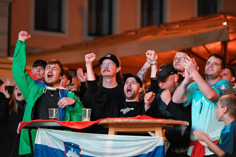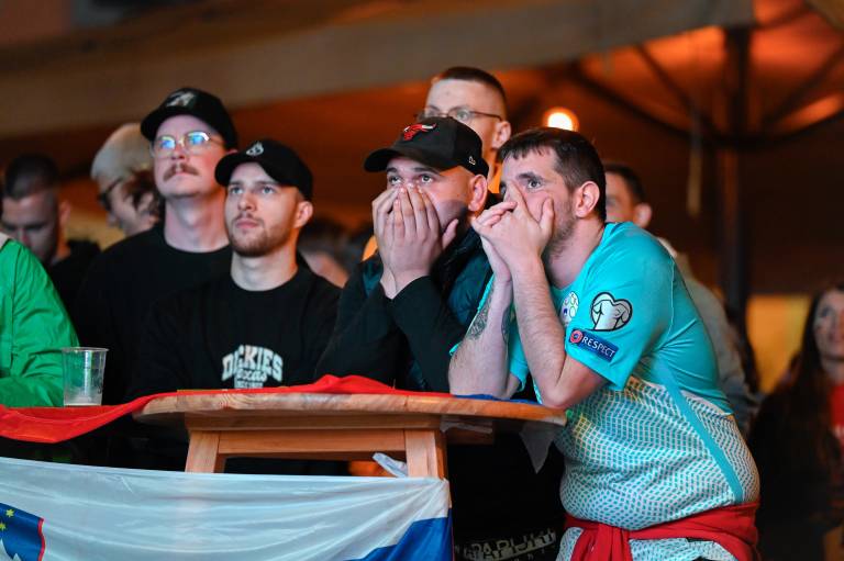 Navijači niso mogli verjeti svojim očem, ko je Benjamin Šeško zapravil stoodstotno priložnost za vodstvo Slovenije. Pred streljanjem enajstmetrovk se je slišalo vzklikanje ponarodelega navijaškega slogana »Kdor ne skače, ni Slovenec.«