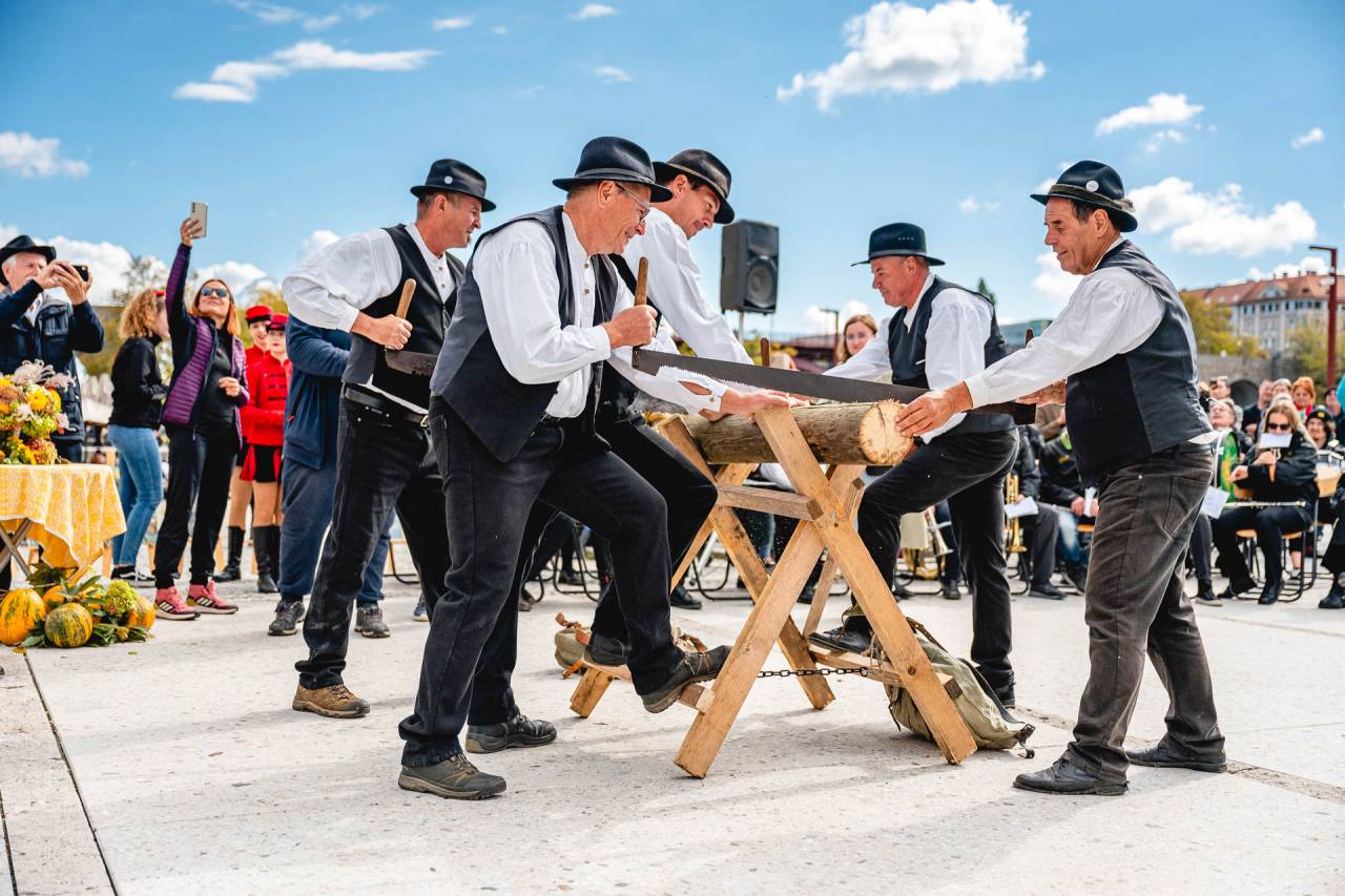 Po kulturno-umetniškem delu programa je sledil še preizkus znanja, novinci so se preizkusili v žaganju.
