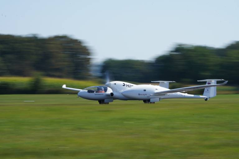 Na Letališču Edvarda Rusjana Maribor je danes uspešno - in prvič v globalnem pomenu - poletelo letalo na tekoči vodik z električnim motorjem in s človeško posadko.