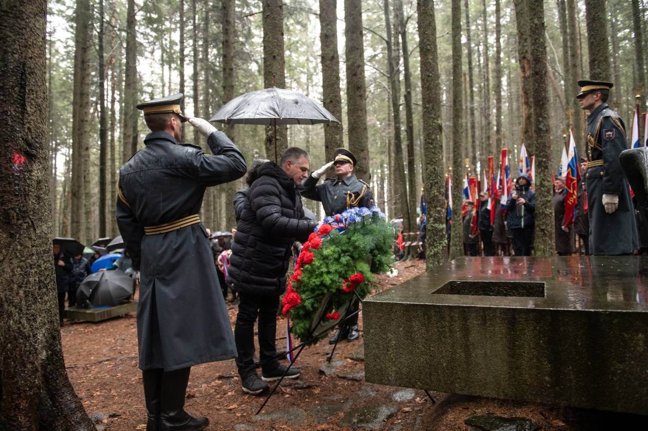 V slovesnosti so se poklonili padlim borcem Pohorskega bataljona na Osankarici, zbrane je nagovoril predsednik državnega sveta Marko Lotrič.