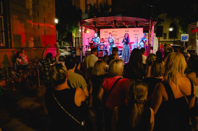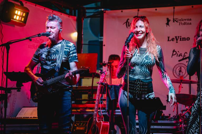 Sobotni večer sta v centru mesta popestrila zakonca Diana in Simon Gomilšek, ki delujeta pod imenom Duo Platin. Tokrat sta nastopila z bandom.